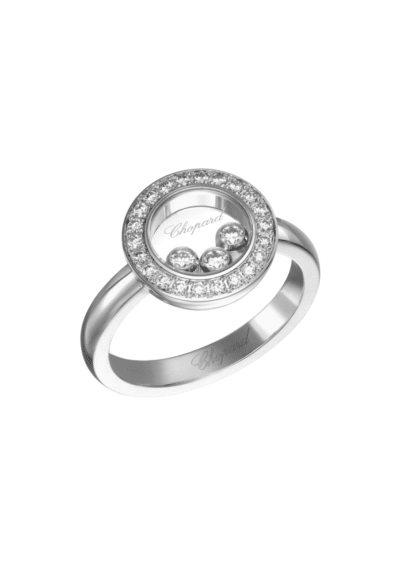 Kun je anders dan vrolijk worden van ‘dansende’ diamanten? Chopard ontwikkelde deze iconische techniek, waarbij diamanten speels en vrij bewegen tussen twee saffierplaatjes, als ode aan de joie de vivre.